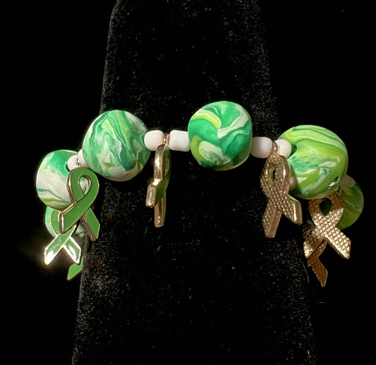 Bracelet - Lyme Disease Awareness 2 - Made with Handcrafted Clay Beads